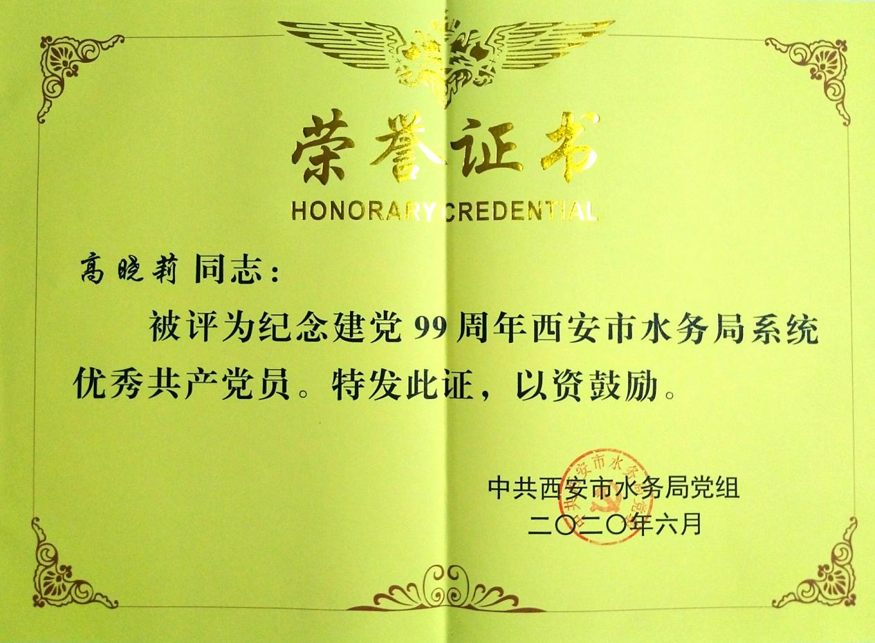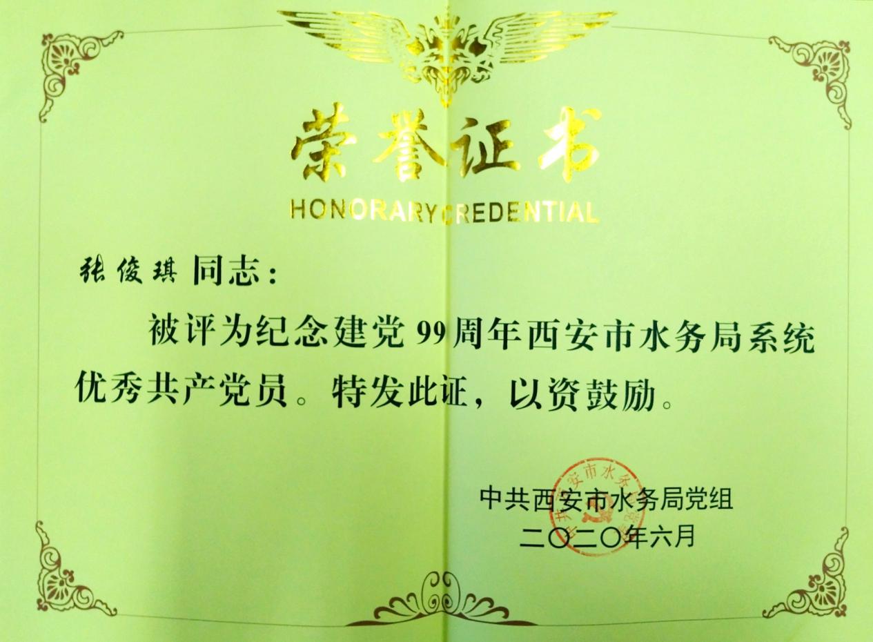 我單位張俊琪同志和高曉莉同志被市水務局黨組評為優秀共產黨員。